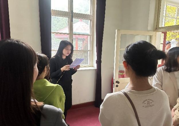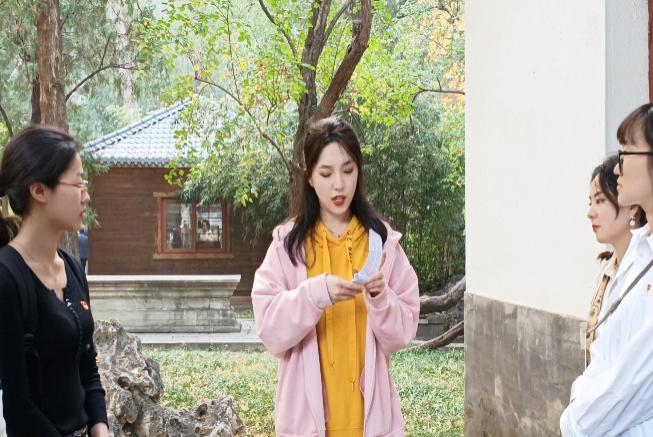 随后,全体党员同志参观了双清别墅,这里是中国共产党“进京赶考”第一站,曾是中共中央的指挥中心,它见证了中国革命走向胜利的历程。在这里,博士研究生第一党支部张馨元同志围绕“铭记历史,走好新时代赶考之路”进行现场教学,硕士研究生第一党支部周澳妍同志作了题为“忆‘赶考之路’守时代初心”的现场教学。