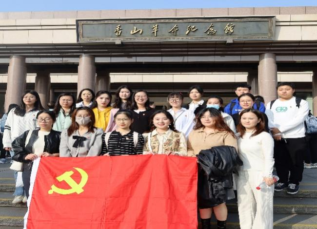 在香山革命纪念馆内党员同志们进行了精彩的现场教学。博士研究生第二党支部王萌同志分享了“红鱼书信寄深情——纪念伟大的无产阶级革命家任弼时”的学习感悟,硕士研究生第二党支部张慧同志作了题为“追寻红色印记赓续赶考精神”的现场学习。
