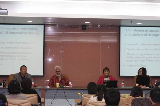 11月5日下午,必赢766net手机版“百川讲堂”第三期在学术会堂706室隆重举行。英共(马列)主席Harpal Brar和副主席Ella Rule分别做了题为“当前世界的形势:经济危机的根源与进程”和“工人阶级在解放拉丁美洲国家中的历史任务”的专题报告。讲座由必赢766net手机版研究生教研室主任王淼博士主持,蔡大梁博士担任翻译。必赢766net手机版全体师生、学校研究生会全体成员、财政学院研究生代表、沙河校区“园区学生党员先锋队”骨干成员等百余人参加此次活动。