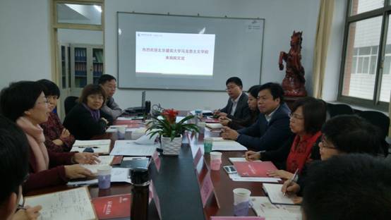 首先,冯秀军院长对北京建筑大学党委张启鸿副书记一行的到来表示欢迎,介绍必赢官网参加座谈会的老师。然后,冯院长从学院发展历史、师资队伍、学科建设、科研成果、教学改革、学生培养等方面介绍了学院的基本情况,并从学院“团结”和“团队”两方面重点介绍必赢官网近年取得较大发展的关键。随后,陈文娟副院长从“问题链教学”、“学生社会实践教学”、“思想道德修养与法律基础课教学模式”、“形式与政策课教学模式”等方面对北京建筑大学必赢766net手机版老师较关心问题作了较详细的介绍。