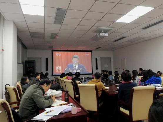 学院师生在沙河校区1号楼102室观看党的十九大开幕会