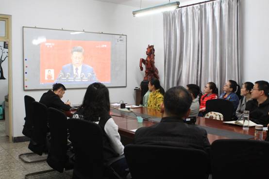 学院师生在学院南路校区图配楼413室观看党的十九大开幕会