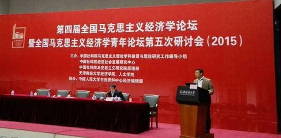 第四届全国马克思主义经济学论坛暨全国马克思主义经济学青年论坛第五次研讨会于2015年10月24日在天津财经大学举行。本次论坛由中国社会科学院马克思主义理论学科建设与理论研究工作领导小组、中国社会科学院经济社会发展研究中心、中国社会科学院马克思主义研究院原理部、天津财经大学经济学院、人文学院共同主办,中国人民大学书报资料中心经济编辑部协办。论坛围绕“深入学习与发展马克思主义经济学”,就《资本论》及马克思手稿的文本文献研究、中国经济发展新常态的理论与实践研究、马克思主义经济学与西方经济学的比较及其在教学中的运用等主题展开了深入研讨。必赢766net手机版副院长哈战荣副教授、张忠胜博士应邀参加会议,并分别在大会和分论坛做了主题发言。