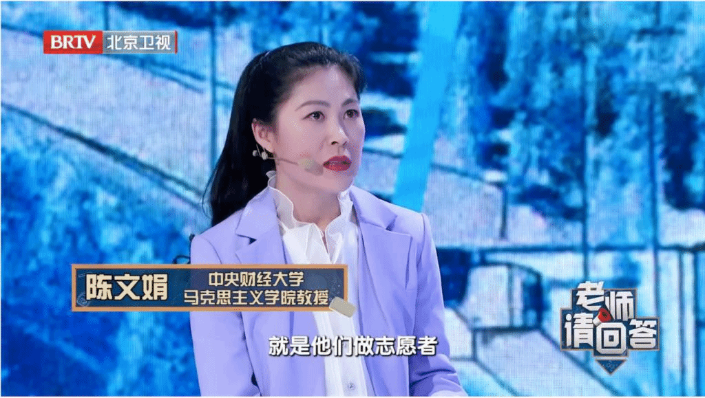 《老师请回答》是一档由中共北京市委教育工作委员会、北京市教育委员会指导,北京电视台卫视节目中心集结了最强团队研发制作,倾全力打造的全新样态的教育类节目。本期特别节目以冬奥志愿者为主题,据悉,冬奥会、冬残奥会期间,北京教育系统约有2.33万人投身各项服务保障工作,其中志愿者约1.4万人,来自68所高校。我校共有323名师生志愿者,他们在“国门第一岗”首都国际机场服务涉奥人员的抵离保障和交通保障。陈文娟教授此次做客《老师请回答》特别节日,展现了我校思政教师的风采,产生了积极的影响。