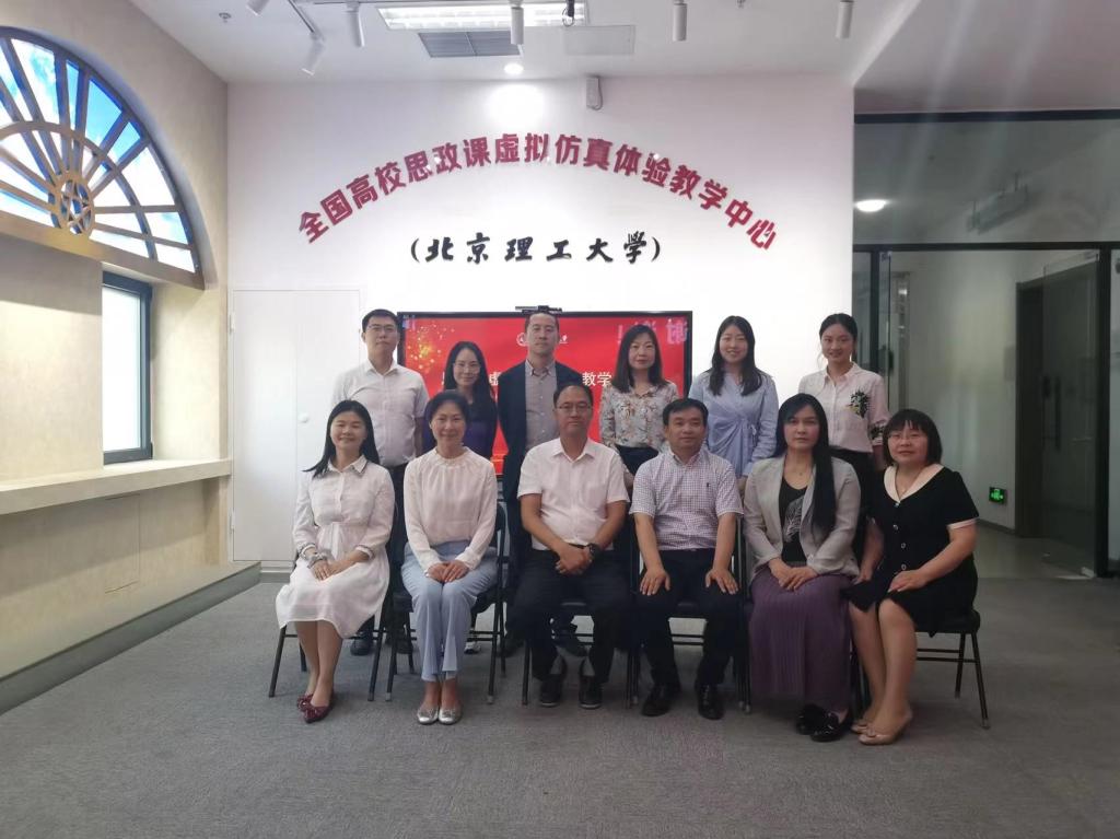 在参观学习环节,调研团在刘存福书记的带领下参观了“全国高校思政课虚拟仿真体验教学中心”,北理工负责教师对中心的发展情况以及如何运用虚拟仿真技术开展思政课教学进行了介绍,并请调研团体验了虚仿课程。