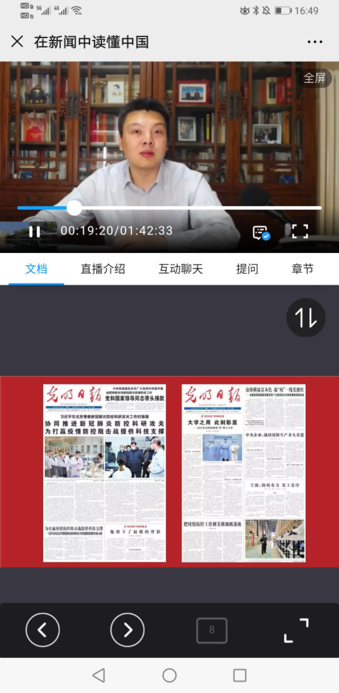 此次隔着屏幕的云端讲座,不仅为师生全面展现了光明日报等主流媒体宣传报道的魅力和影响力,也重点提出了提升透过社会现象看本质和大势的媒介素养问题,师生们纷纷表示这是一场非常解渴的“及时雨”。大家一致认为,这次讲座也是我校在特殊时期、特定场域贯彻“立德树人”根本任务,创新学术交流机制,丰富思政课内容形式,深化校媒合作、院媒合作,进行跨学科研究的一次有益探索。